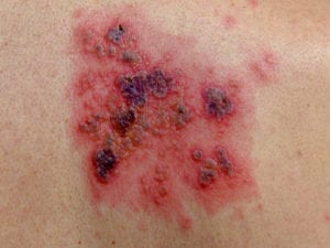 Ana is an 85 year old who was recently treated for a viral URTI and now presents with a rash on her back of 1 day duration, it is mildly “tingly”.
