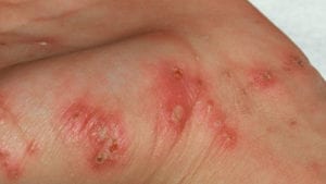 Sally then shows you some itchy finger lesions that she is concerned about.